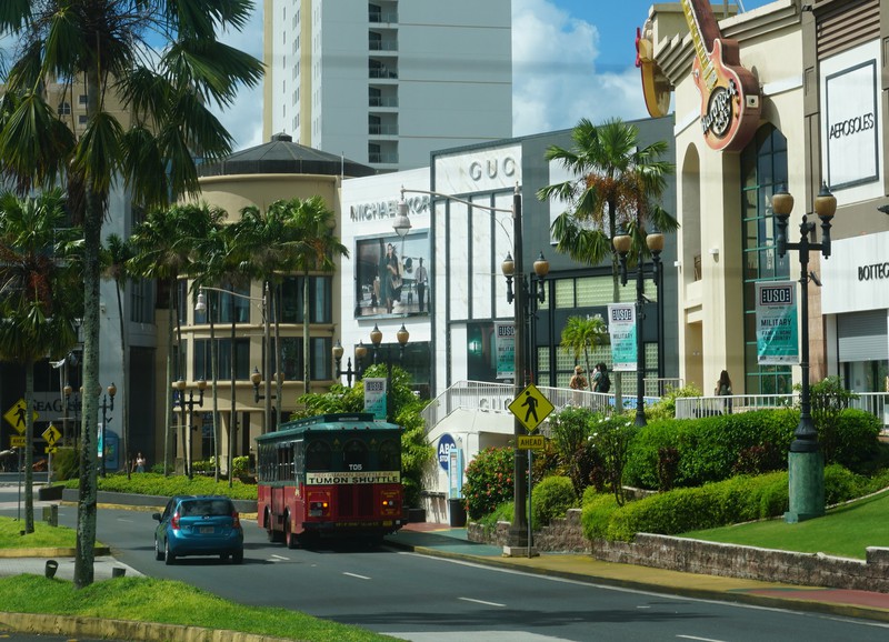 ▲ タモン地区のショッピングエリアまでは徒歩で15分、ホテル目の前からバスが出ていてアクセスも抜群。都会的に過ごしたい時も思うまま。