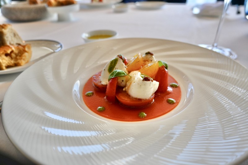 ▲ 故郷のシチリア産トマトとブッラータチーズを用いた前菜。