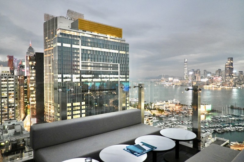 穴場的なお酒スポットとして知っておくと便利なアドレスが、パークレーン香港のルーフトップバーSKYE。青に染められたバーエリアはゆったりと過ごせるソファやハイチェアが配されており、香港の風に当りながら夜景を拝みたい大人にはこれ以上ないロケーションかと。