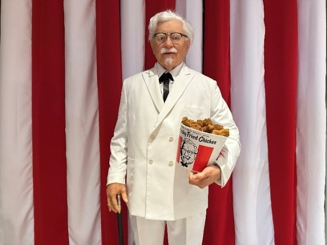 ▲ ルイビルのツーリストインフォーメーションセンターの中に、カーネルサンダーソンの像が置かれています。