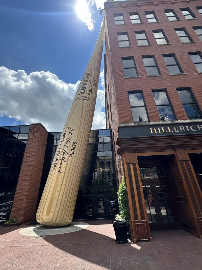 ▲ 入口の巨大なバッド(高さ36.6m、重さ30.8t)のオブジェがインパクト絶大な「ルイビル スラッガー ミュージアム」。バットの工場にミュージアムが併設されています。19世紀創業の老舗で多くのメジャーリーガーがここでバッドをオーダーしているそう。