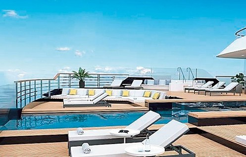 「エブリマ」は全長190m、149室の小型高級ヨット。クルーとゲストの比率が1対1.2なのは、クルーズ業界でもトップクラスなんです。ホテル独自の「ゴールドスタンダード」に基づく、自慢のサービスは洋上でも期待できます。飲食(一部除く)やエンタテインメントなどが込みのオールインクルーシブ制で、船内チップやWi-Fiも料金に含まれています。2021年春の西地中海を皮切りに、エーゲ海やカナダなどのコースを予定。