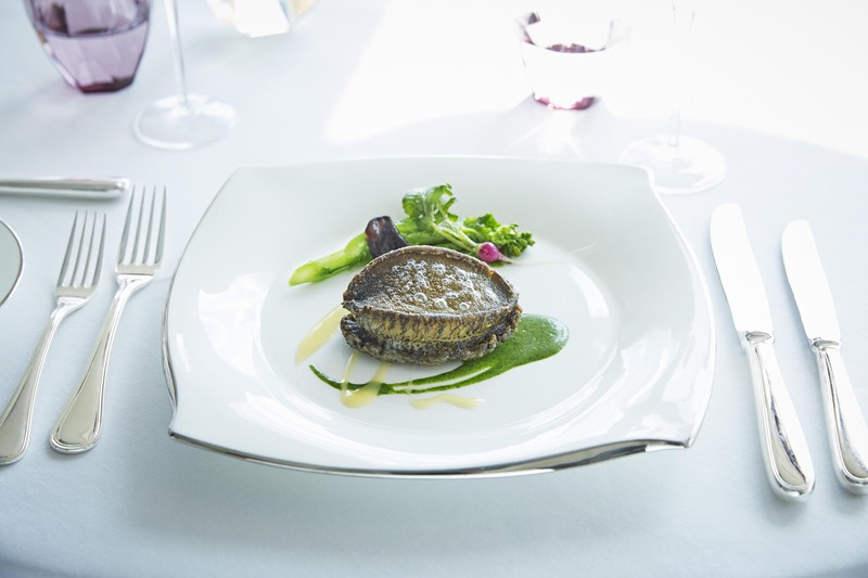 地元の海の幸を使用したフレンチは長年培った同ホテルの伝統の味を引き継ぎ、さらなる進化を加えたもの。名物は鮑ステーキ。柔らかく、味の奥行きが深いこの美味しさは、これを食べるだけでも大きな価値があると断言できます。