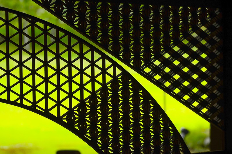 食事処のエントランスや客室のエントランスなどには、組子障子(くみこしょうじ)が使われている。みごとな細工に目を奪われる。