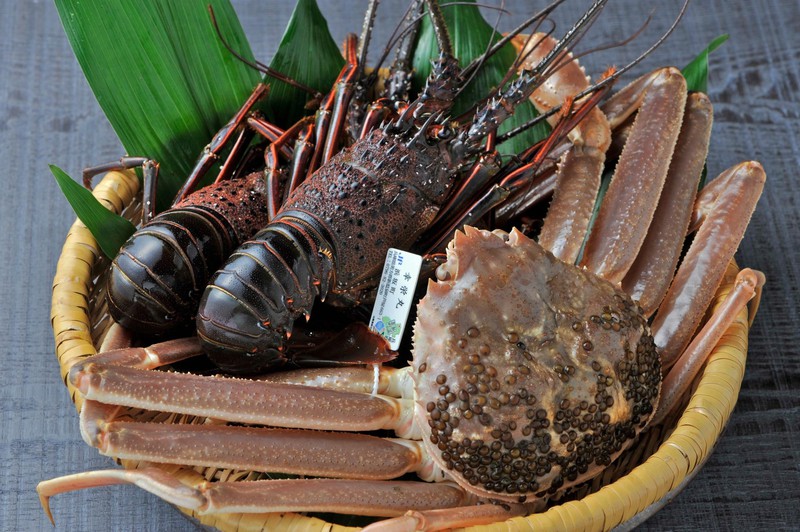 伊勢海老やカニなど、旬の美味しいものがいっぱいの夕食。