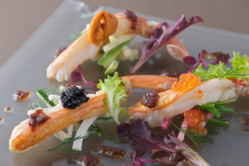 和食とフレンチが融合した料理は、この宿ならでは。新鮮な伊勢海老は特に美味。