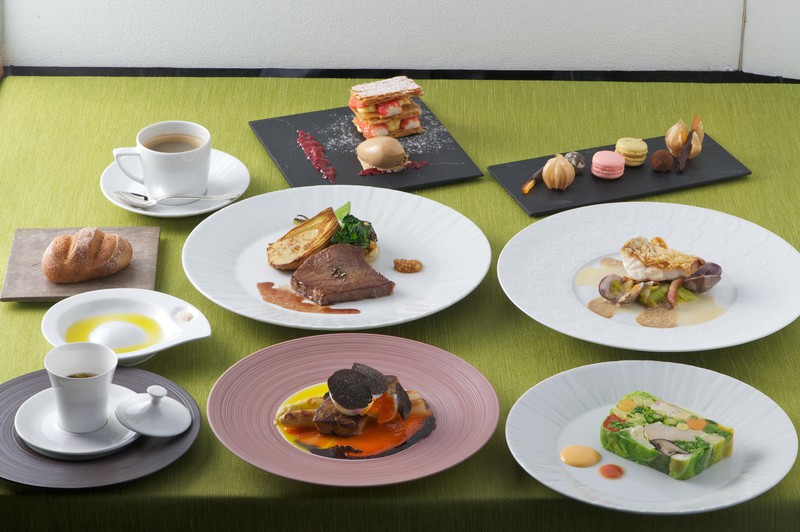明石の海の幸、和牛、地鶏、地の野菜などを使った目にも美味しい料理が次々と供される。スウィーツ、パンも絶品。