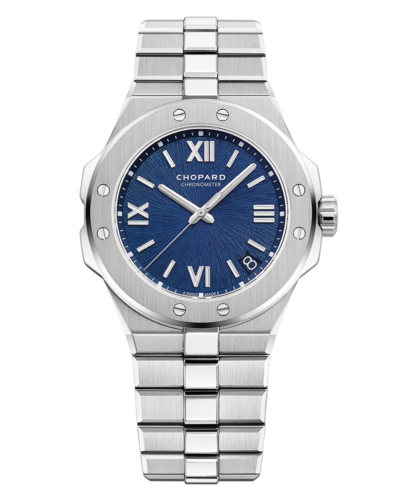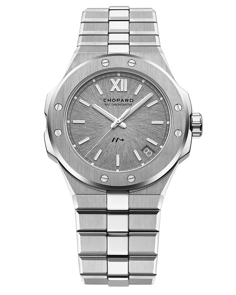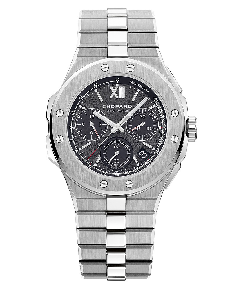 ▲ ケースの素材やダイヤルカラー違いのほか、ダイヤモンドセッティングまでバリエーションも実に豊富。仕上げの良い時計ほど実物と写真の差が大きいものですから、ぜひショップでその目で実物を確かめることをオススメします。 「アルパイン イーグル EX クロノ」自動巻き、ルーセント スティール A223ケース(44mm)×ブレスレット。100m防水。242万円/ショパール(ショパール ジャパン プレス)