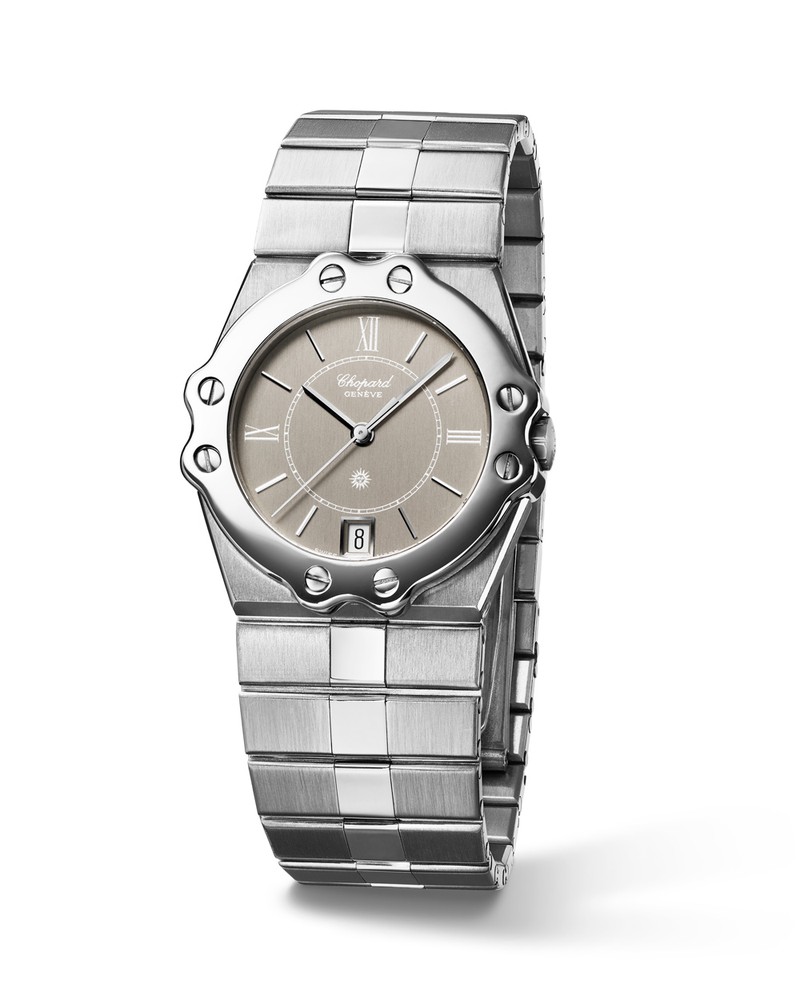 その当時、ショパールの時計はすべてがゴールド製であったため、SS製スポーツモデルは大きな挑戦でした。また、ゴールドに比べて硬度の高いステンレスをゴールドと同じように精緻に美しく加工するには、技術的な課題もありました。