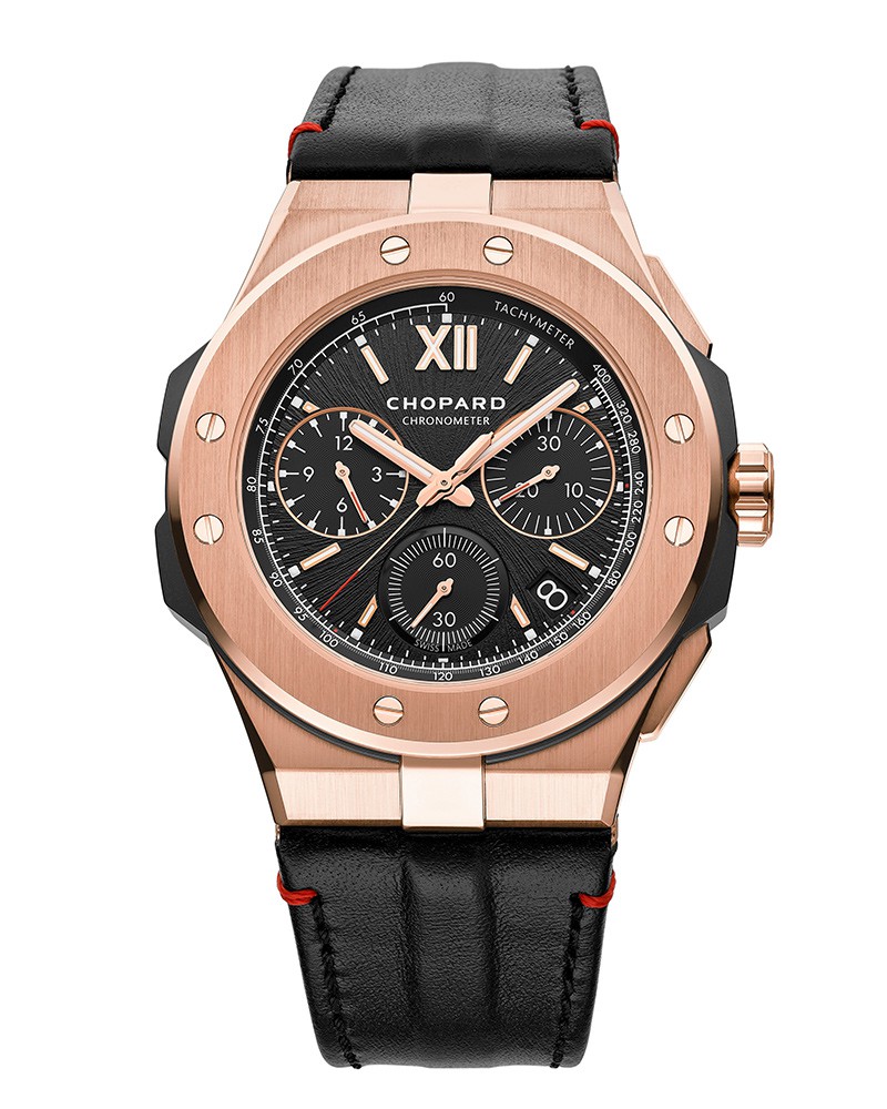 ▲ 「アルパイン イーグル EX クロノ」自動巻き、ローズゴールド&セラマイズドチタンケース(44mm)、カーフスキンストラップ。100m防水。価格用問い合わせ/ショパール(ショパール ジャパン プレス)