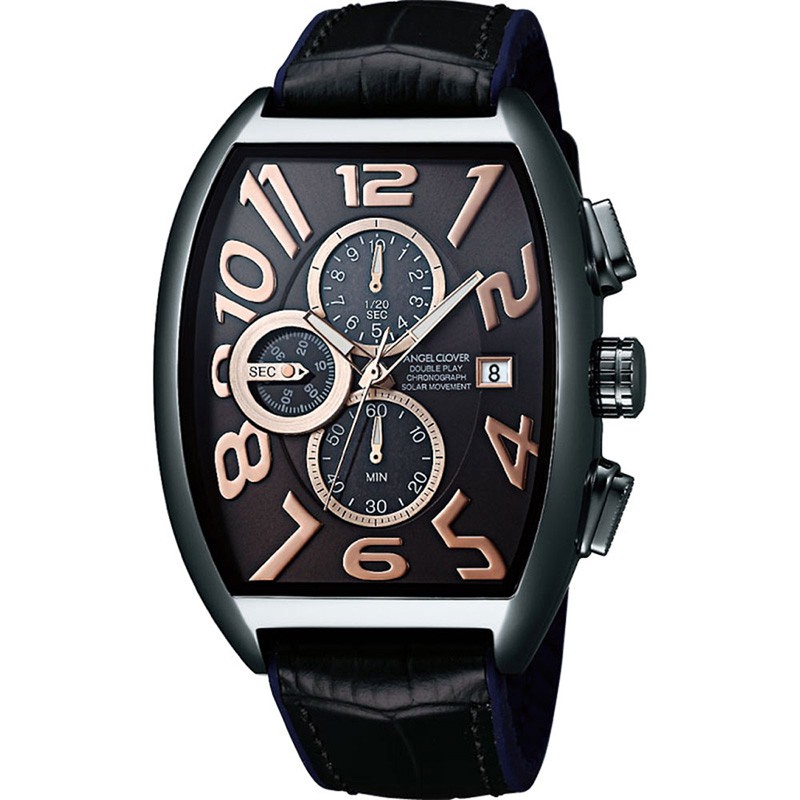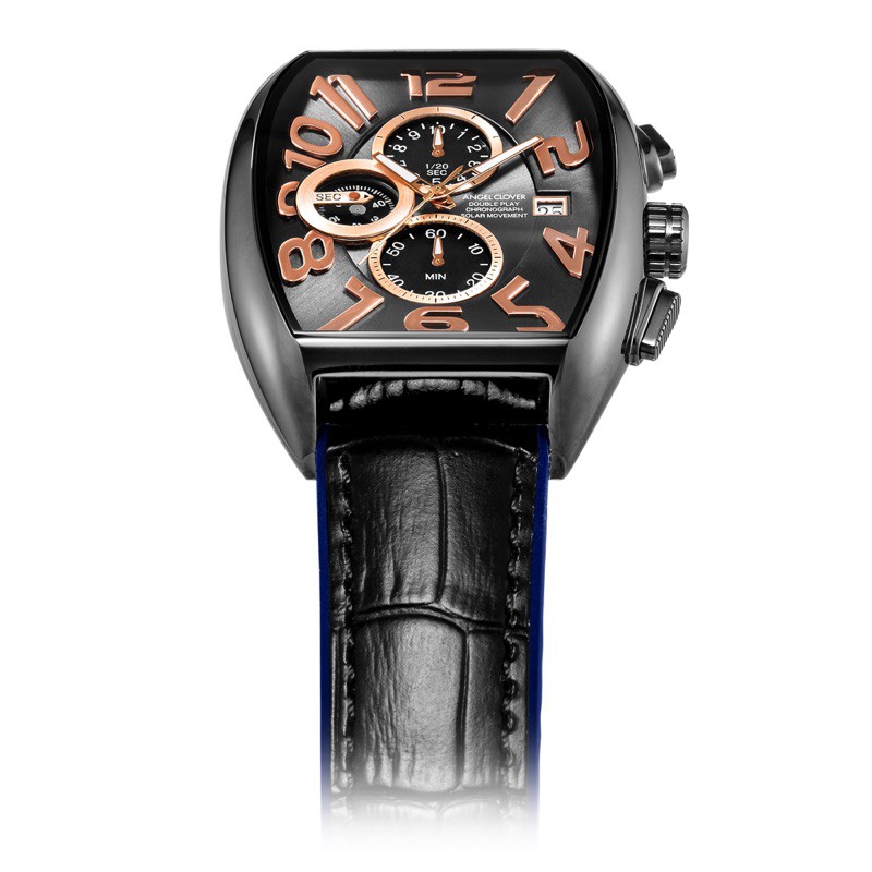 特徴的なトノー型も、ブラックモデルならシックな顔つきに。「DPS38GY-BK 」ソーラークォーツ、SSケース(ケースサイズ W38×H44mm)、カーフレザー&ラバーベルト、3気圧防水。2万6000円(税抜き)/ウエニ貿易