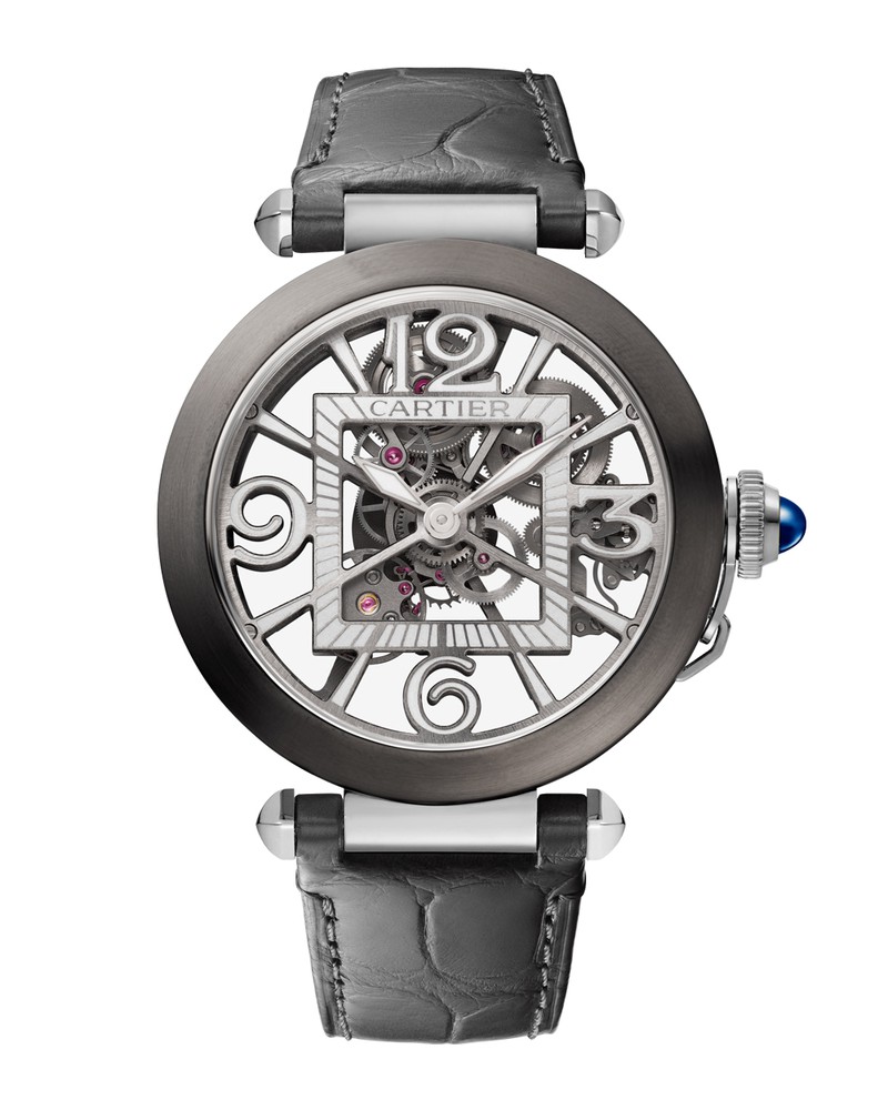 ▲ 「パシャ ドゥ カルティエ」自動巻き、SSケース(41mm)、アリゲーターストラップ(グレーとブラックの2種が付属)。422万4000円/カルティエ(カルティエ カスタマー サービスセンター)