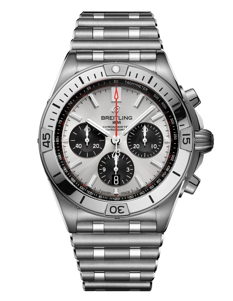 42mmとちょっとだけ小ぶりになったケースに、幅広なルーローブレスの組み合わせは、流行りのスポーティ路線に沿いながらも、ブライトリングらしい独自性も打ち出している。