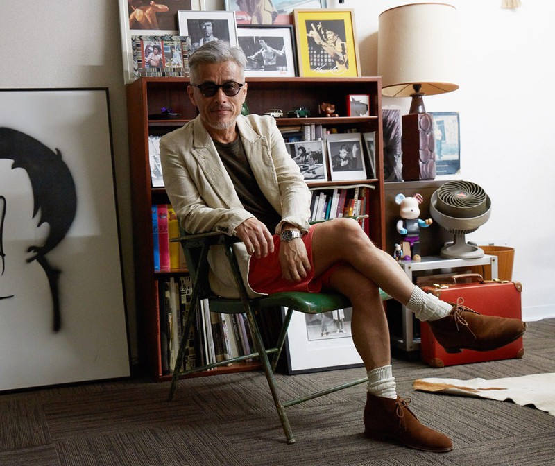 その気分はカズさん自身のスタイルにもリンクしているようで、英国ブランドのE・トーツのジャケットに、パタゴニアのショーツという、スポーツミックススタイルでお出迎え。足元をスエードのチャッカにすることで、大人の上品さを担保しています。