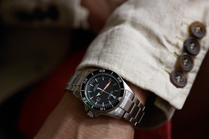 そんなスタイルに合わせる腕時計は、ドレスウォッチではなく、まさかのシチズン「プロマスター」! アクロバティックとも言えるキメ技には、脱帽するしかありません。