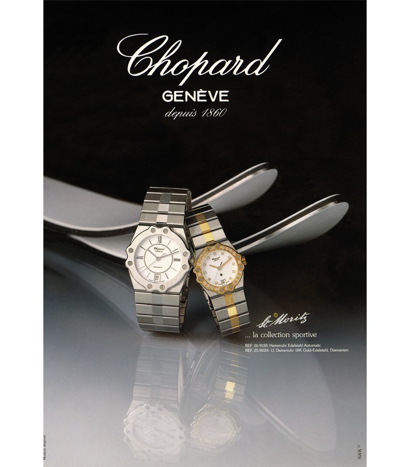 ▲ ショパールの「アルパイン イーグル」の前身である「サンモリッツ」のAD。リゾート地サンモリッツでウィンタースポーツを楽しむ人々のラフスタイルを想定していました。