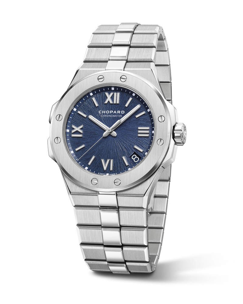 ▲ 「サンモリッツ」に着想を得ながら、さらにワシの虹彩といった自然のディテールも取り入れ、2019年に発表されたのが「アルパイン イーグル」。「アルパイン イーグル 41」自動巻き、ルーセントスティール™ケース(41mm)×ブレスレット。100m防水。231万円/ショパール(ショパール ジャパン プレス)