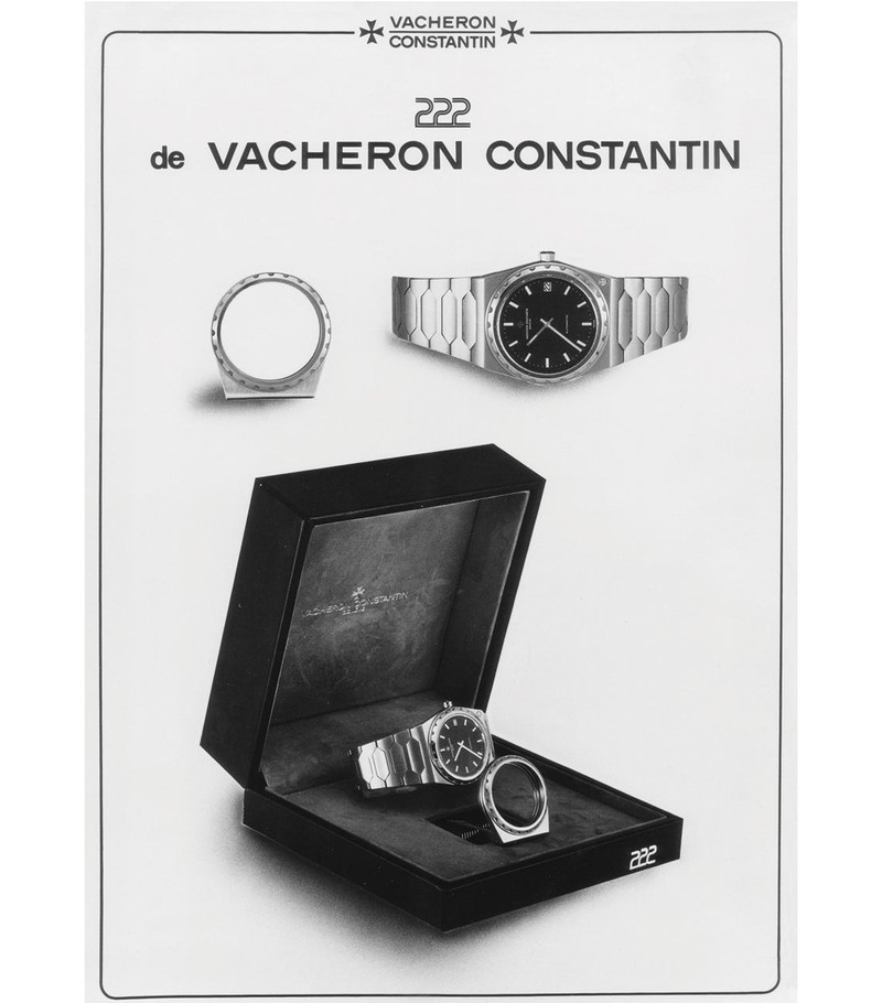 ▲ 1977年にヴァシュロン・コンスタンタンから発売された「222」のAD。デザインは当時新進気鋭であったヨルグ・イゼックによるもの。