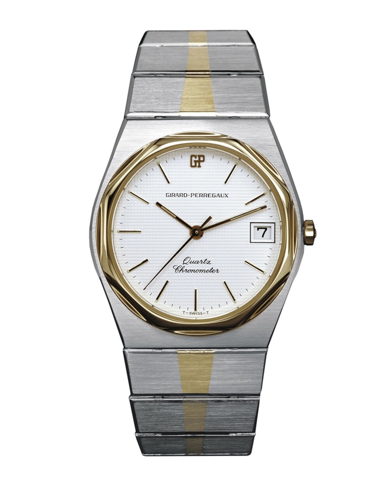 ▲ ジラール・ペルゴから1975年に発表された初代「ロレアート」。ベゼルにダイヤモンドをセッティングしたレディースモデルも展開されていました。
