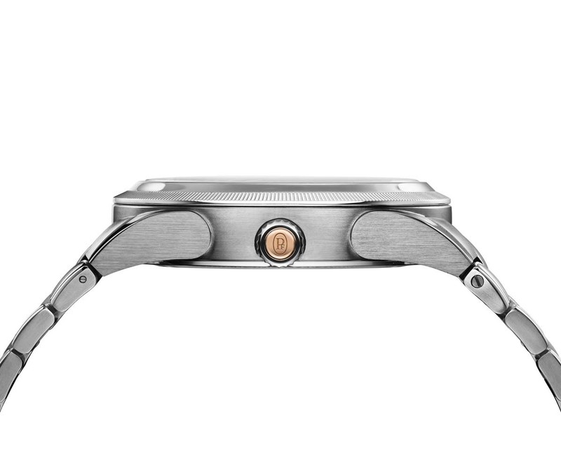 ▲ ベゼルのローレット加工や繊細に磨き分けられた外装にパルミジャーニ・フルリエのこだわりがうかがえます。テーパードの効いたブレスレットも美しい。