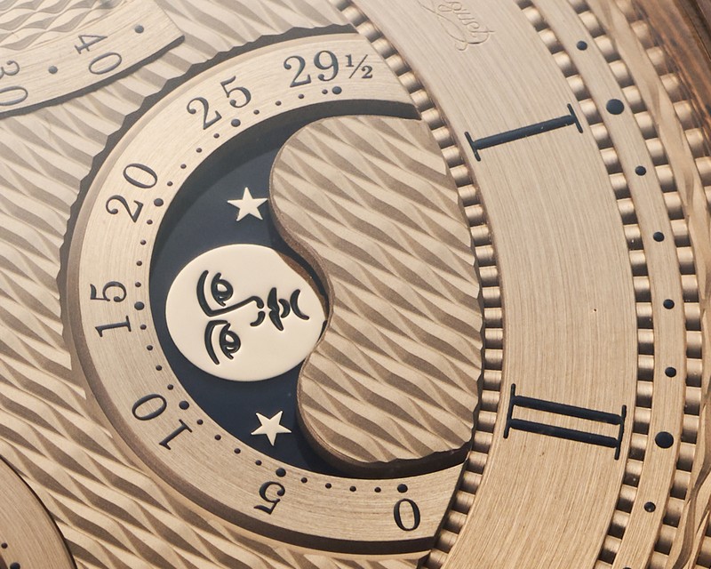 ▲ 「クラシック 7235」の2時位置のムーンフェイズは、月にもご注目。オリジナルにあった顔までもが、丁寧に彫られて再現されています。
