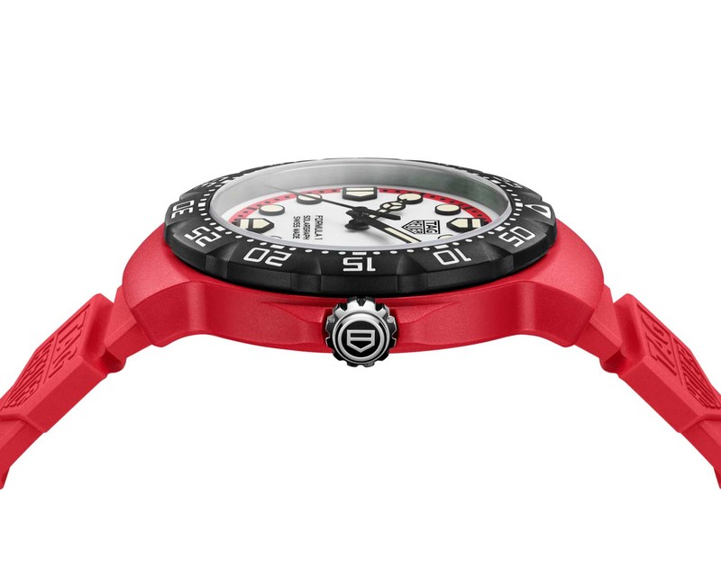 そして忘れちゃならないのが、この新作からタグ・ホイヤー フォーミュラ1はソーラーグラフ、つまり光発電式のクォーツに進化したところ。直射日光に2分間当てるだけで時計を丸一日稼働させることに加え、バッテリーは約15年もの寿命を誇るというからタダモノじゃありません。