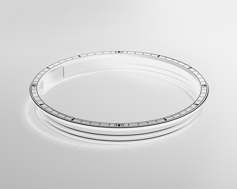 ▲ ゴングと文字盤風防を一体化させたサファイアモノブロックテクノロジーは独自特許技術を取得。この1本の時計の中に計10件の独自技術特許を有しています(出願中も含む)。