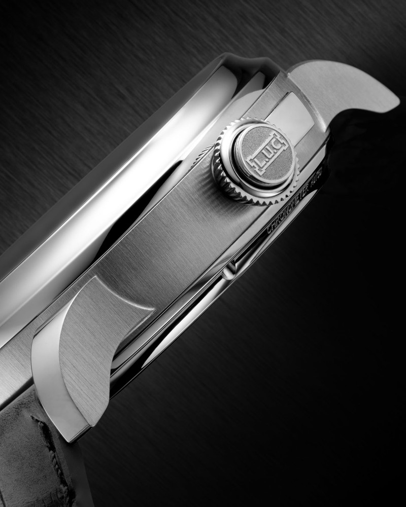▲ リューズは、ストライクワーク作動用プッシュボタン一体型。操作のシンプルさも特徴。