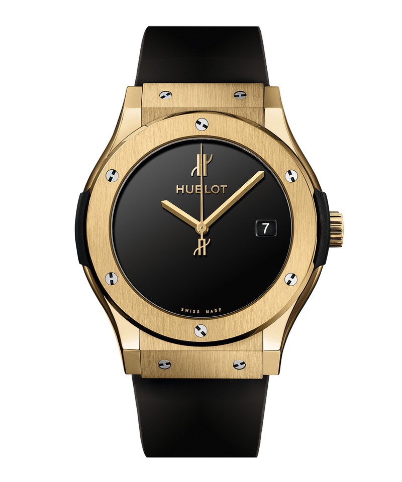 ▲ 「クラシック・フュージョン 40th アニバーサリー イエローゴールド」自動巻き、18KYGケース(45mm)、ラバーストラップ。世界限定100本。267万円/ウブロ