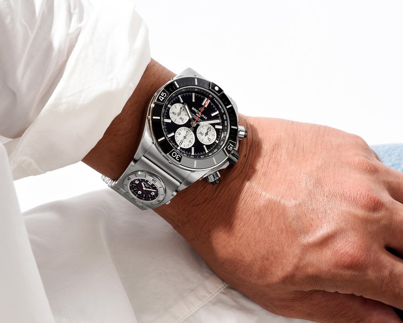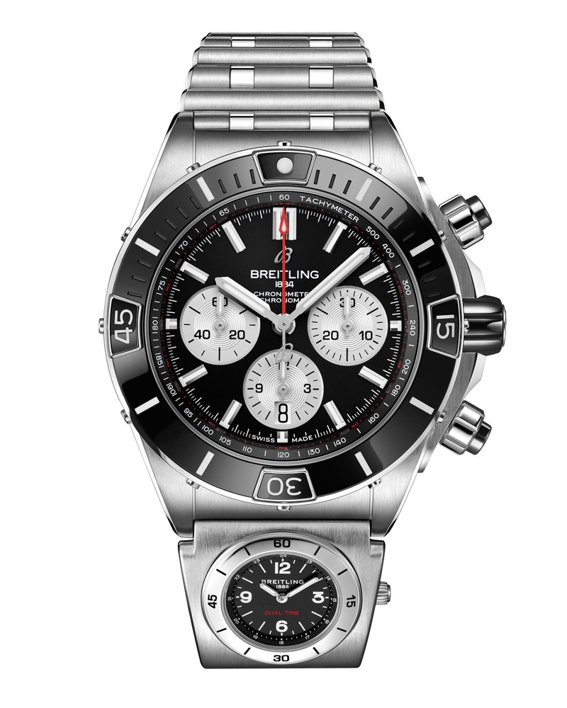 ▲ 「スーパー クロノマット B01 44」自動巻き、SSケース(44mm)×ブレスレット。UTCモジュール(クォーツ)。200m防水。121万円/ブライトリング(ブライトリング・ジャパン)