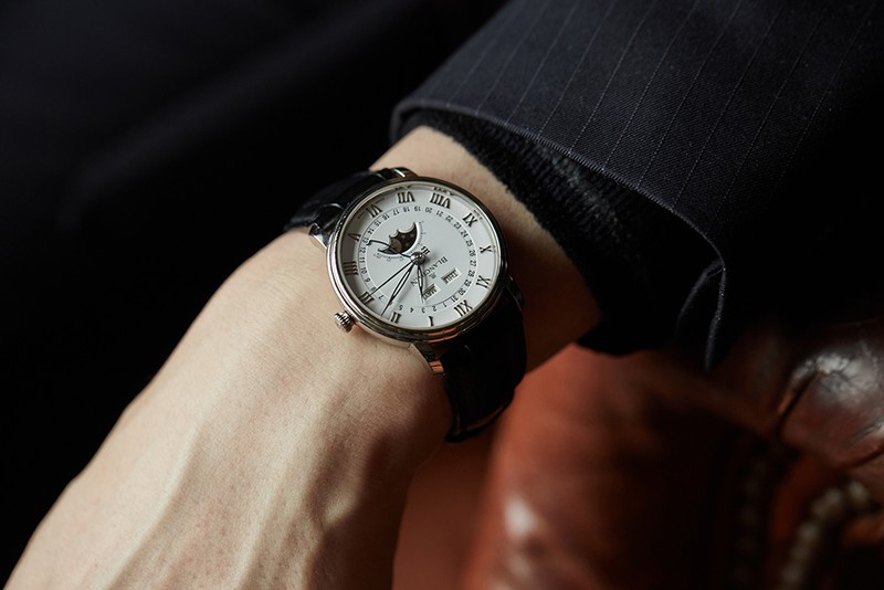 「実は時計のことは、それまであまり知らなかったんです(笑)。ただ、いろいろなモデルをチェックするなかで目に止まり、単純に美しい時計だなと思ったのが切っ掛け。いわゆる一目惚れであり、至高の一本を手に入れるならこれしかないと思ったのです。いろいろ調べて行くうちに、ブランパンは世界最古の時計ブランドであり、オーソドックスな丸型モデルしか作らないなど、こだわりの深い名門であることを知りました。このコンプリートカレンダーも伝統意匠を極めたデザインや、見やすくそして整ったレイアウトなどに、長い年月を掛けたどりついた境地のようなものを感じます」