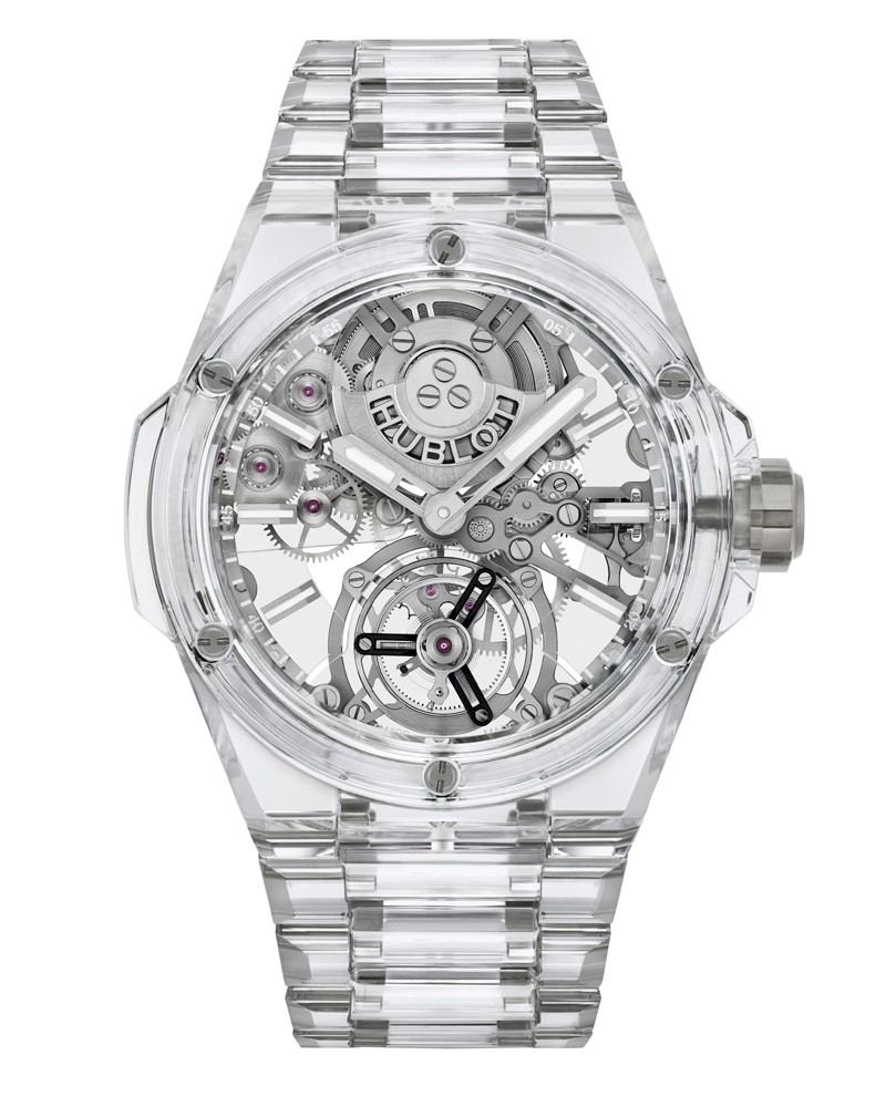 シースルバックやスケルトンダイヤルはすっかりおなじみですが、腕時計のスケルトン化はついにケースさらにはブレスレットにまで! サファイアクリスタル製ケースで、腕元の注目度は急上昇ですよ。