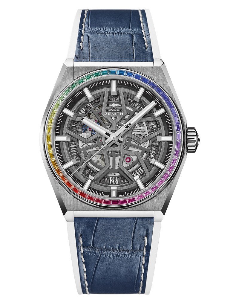 ▲ 「デファイ クラシック レインボー」自動巻き、Tiケース(41mm)、アリゲーター+ラバーストラップ。242万円/ゼニス