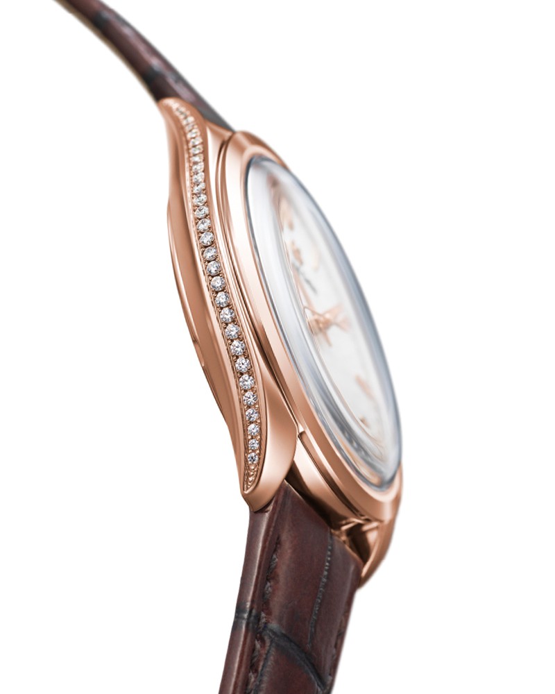 さらに、ダイヤを巻くことで伝統工芸的な美観まで兼備しています。ダイヤの輝きやグラン・フーエナメルの厳かな光沢、それに18KRGケースを擁した一本は、貴族的とも言えるなエレガンスが特徴的。